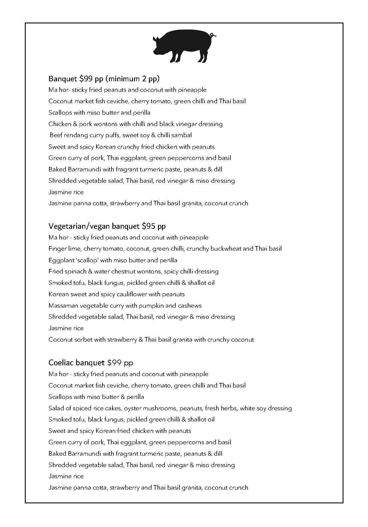 Banquet menus start at $90 per head + gst*