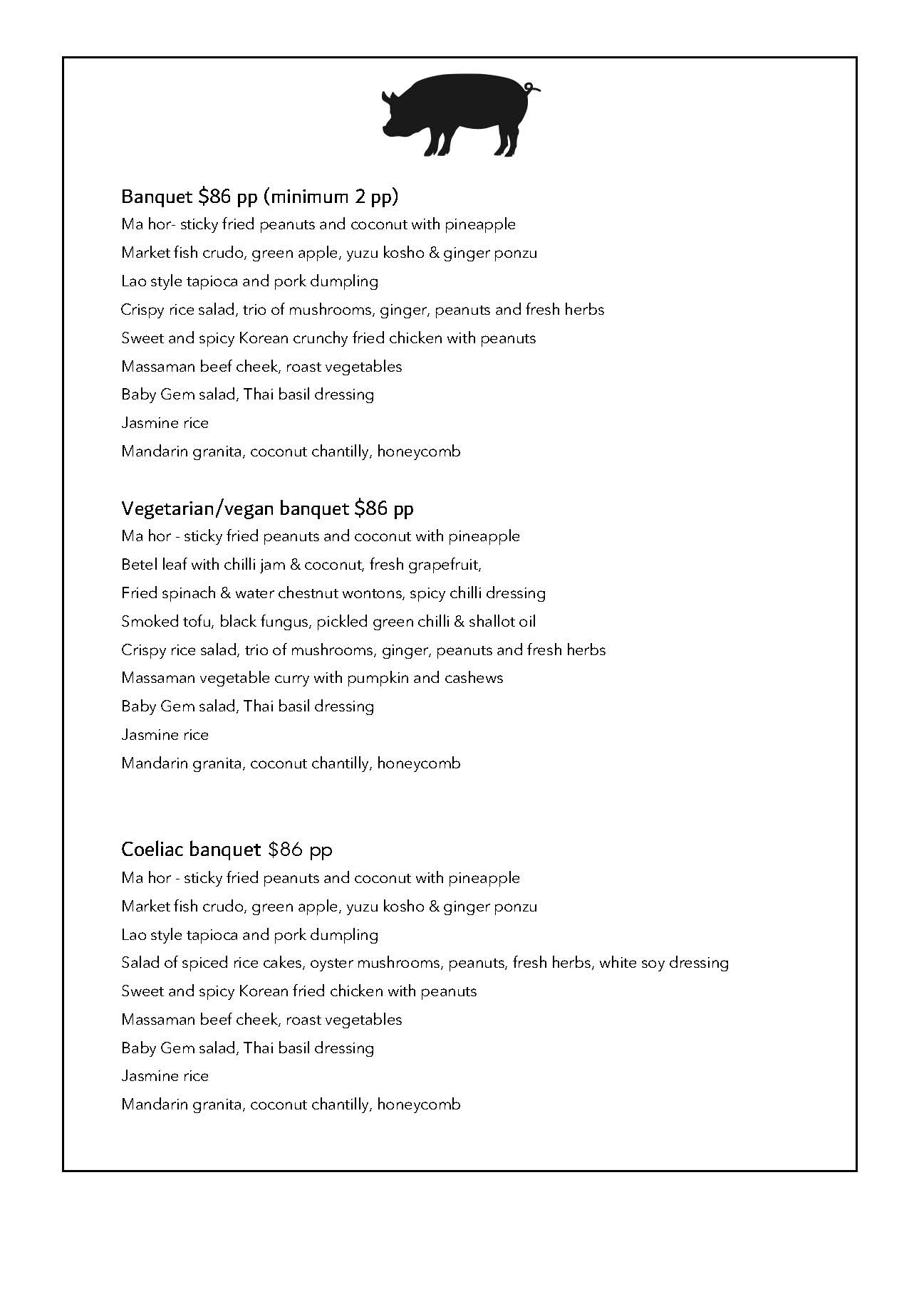 These menus will be similar to our ever-popular banquet menus and start at $86pp.
